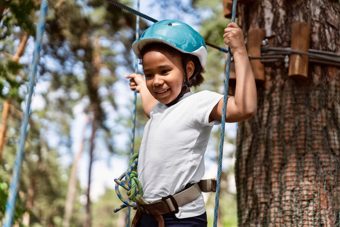 - Ziplines up to 1,400 feet long and heights up to 185 feet