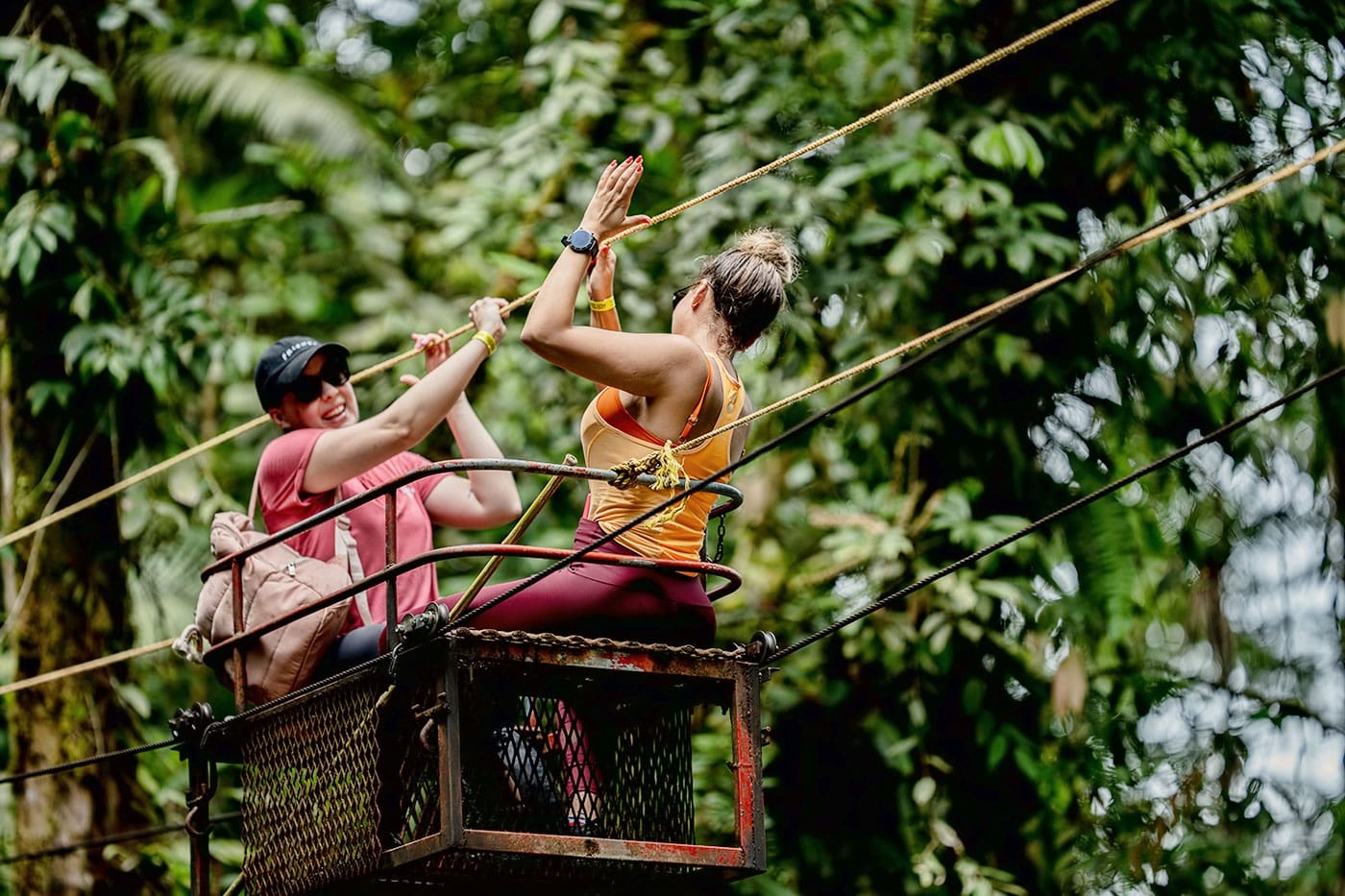 - A professionally guided zipline tour with 6 ziplines, 3 sky bridges, a rappel, and a spiral and floating staircase.