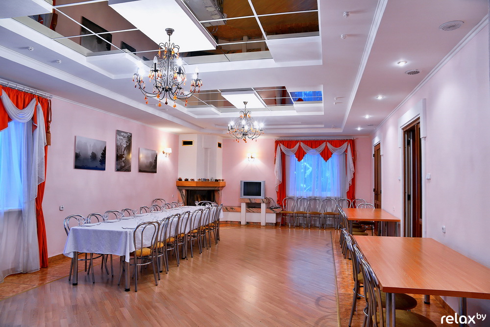 Банкетный зал и танцевальный рассчитан на 75 человек, а спальных мест в доме – 22. За отдельную плату сможем разместить 200 человек. В ОК «Борок» имеется парковка на 20 мест.